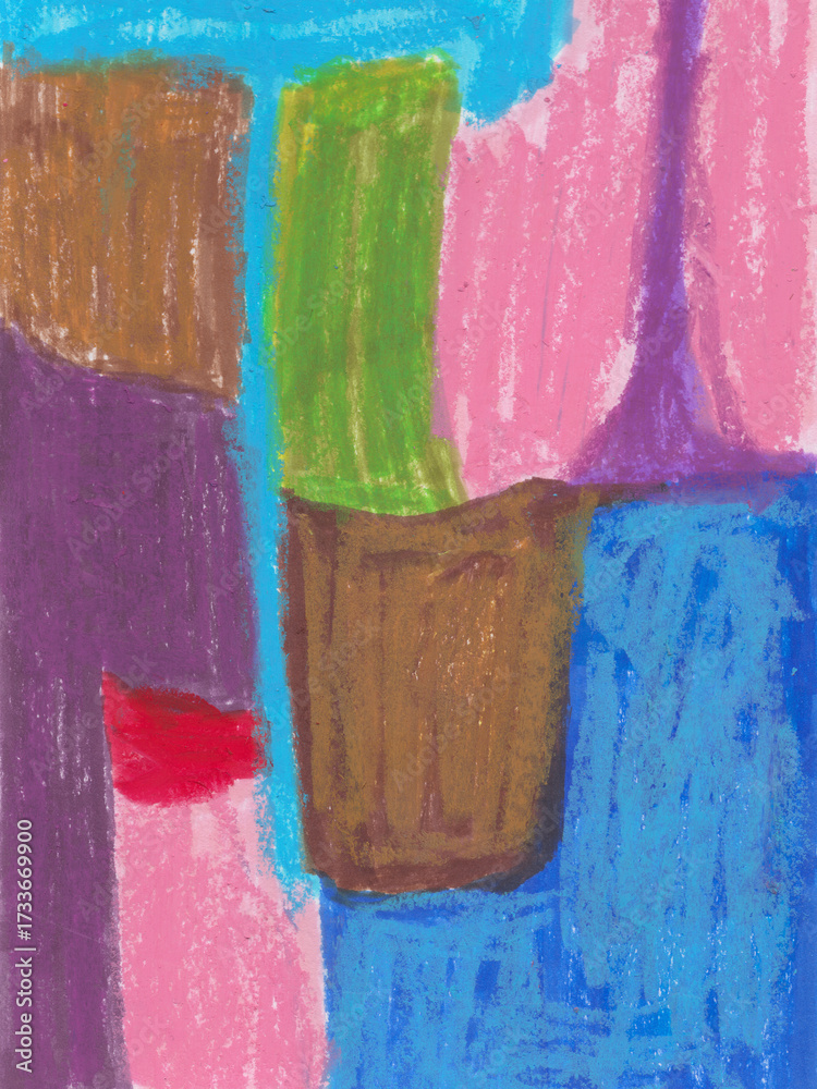 Abstract oil pastel art background with bright geometric shapes in vivid colors #1733669900