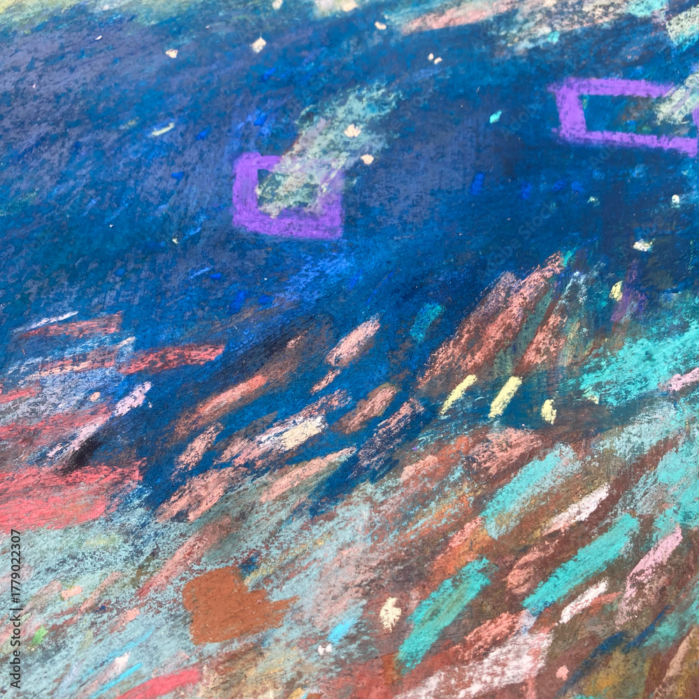 Abstract pastel artwork — dry pastel on paper. Handmade texture with expressive brush strokes and layered color transitions. Ideal for backgrounds, posters, packaging, wall art and contemporary design #1779022307