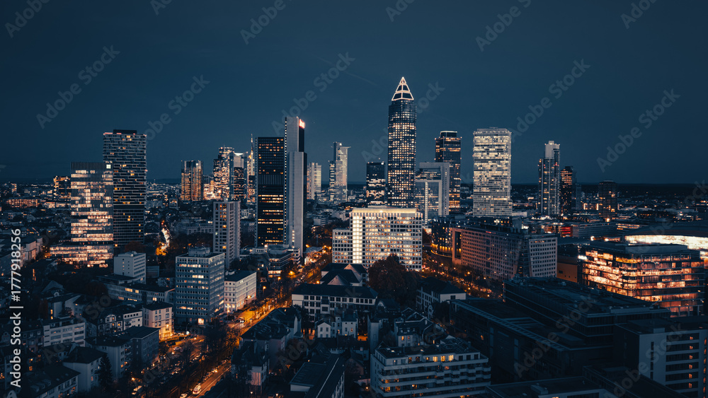 Abstract picture of the illuminated skyline of Frankfurt am Main during the night #1777918256