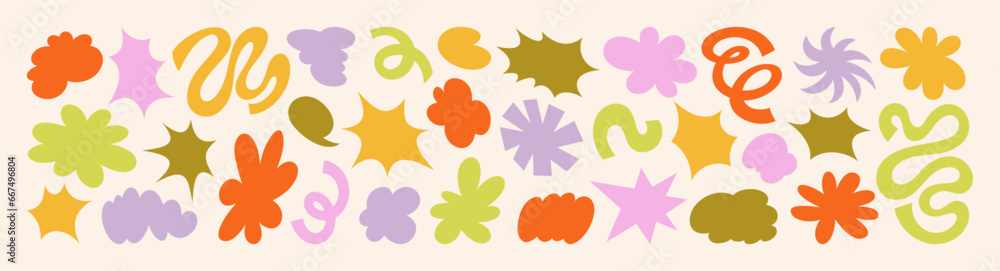 Abstract Retro Shapes and Funky Groovy Forms. Vector Geometric Stickers with Different Elements #667496804