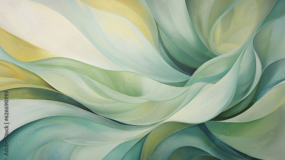 Abstract Soft Green Leaves Background - Celadon Pastel Oil Paint Texture Wallpaper - Generative AI #626690993