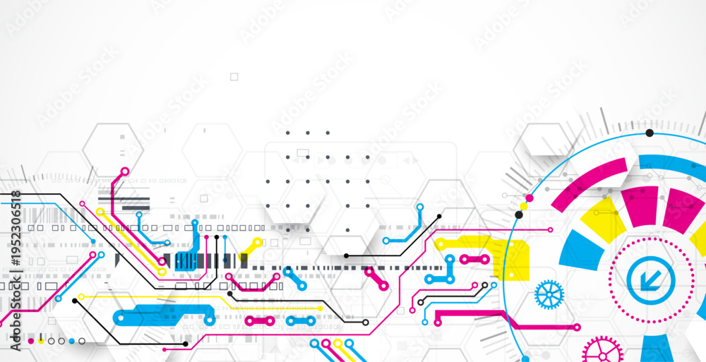 Abstract technological background with various elements. CMYK concept. Vector #1952306518