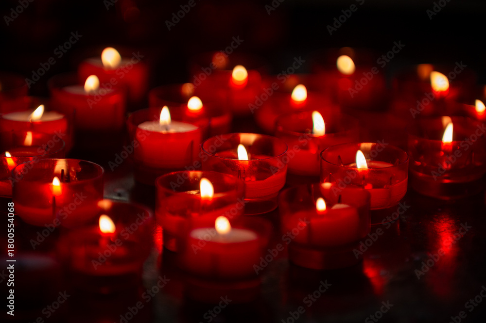 Abstract view of votive prayer candles in a church #1800554068