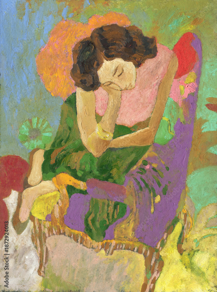 abstract woman portrait. oil painting. illustration #1872924013