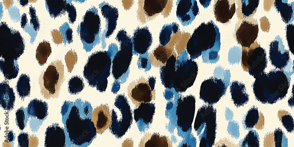 Abstraction leopard vector seamless print for textiles. Fashion pattern, leopard spots in various shades of brown and blue, Vector animal skin print. Fashion stylish organic texture #1248002595