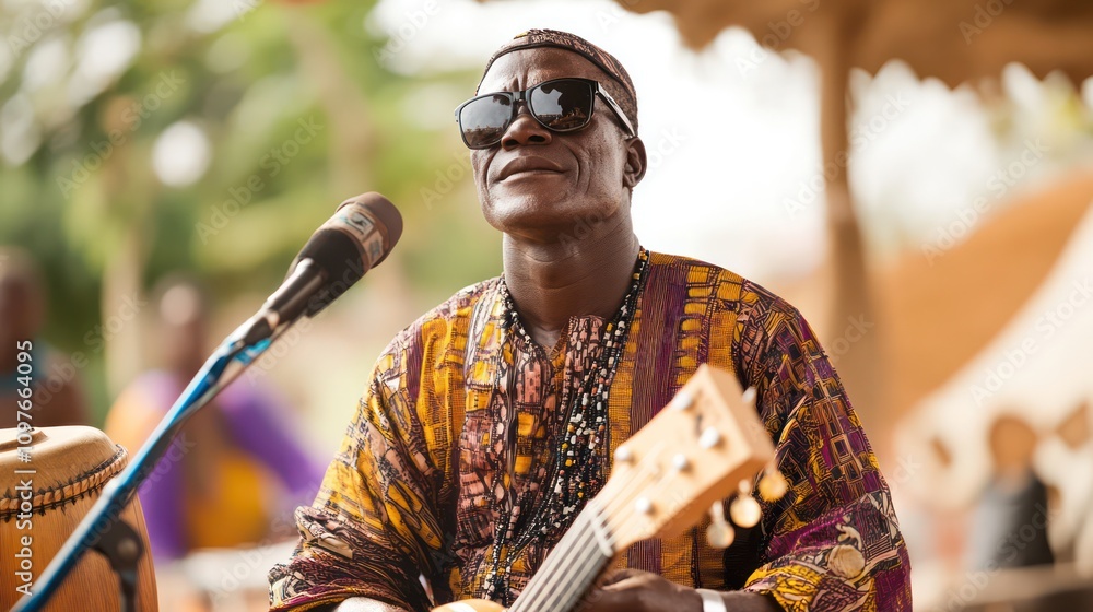African blind musician participating in a cultural music event in Accra, Ghana #1097664095