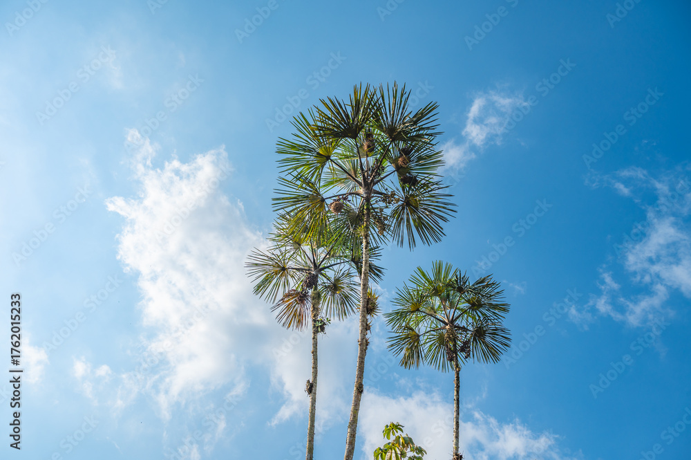 Aguaje Palm Trees Against Blue Sky in the Amazon Rainforest, Ecuador #1762015233