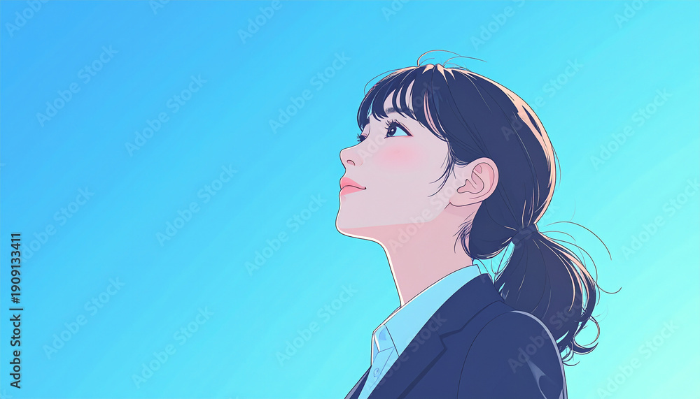 スーツを着て青空を見上げる若い女性のイラスト(生成AI ) #1909133411