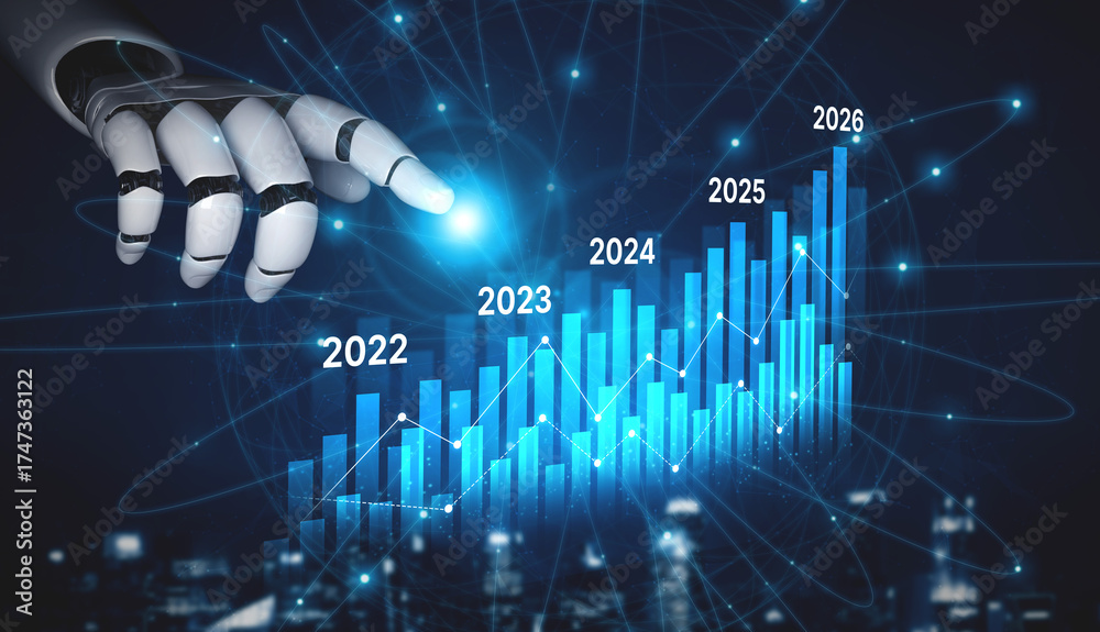 AI-generated image showing data-driven projection of business performance trends across five years using charts and analytics for strategic planning and decision making Vouch #1747363122