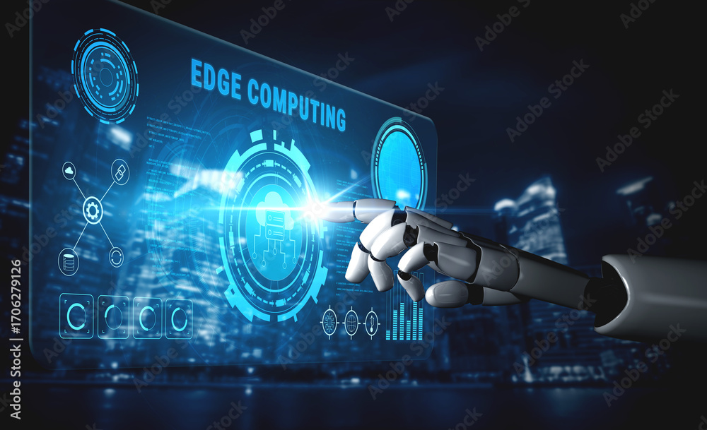 AI on edge computing devices for decentralized data processing and analysis. This AI solution improves speed by processing data locally. Motif #1706279126