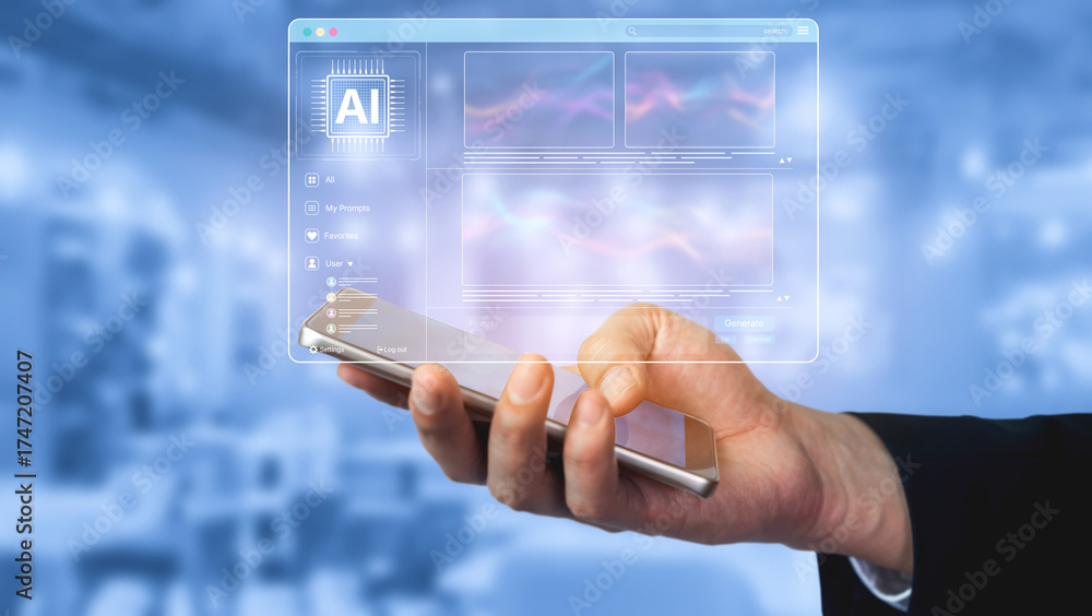 AI platform generating art images with dynamic interface. AI-generated content appears in image gallery artificial intelligence view. Genrative AI loading multiple image from AI design engine. Spline #1747207407