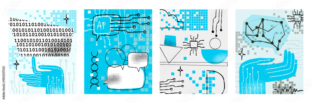 AI Robotic Hands Concepts, Global Technology and Balance Symbols in Hand-Drawn Doodle Style #1933317535