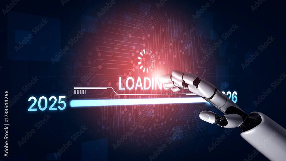 AI visualizes the transition from 2025 to 2026 using smart progress tracking, predictive goal-setting tools, and business transformation insights. Artificial intelligence spline #1738544266