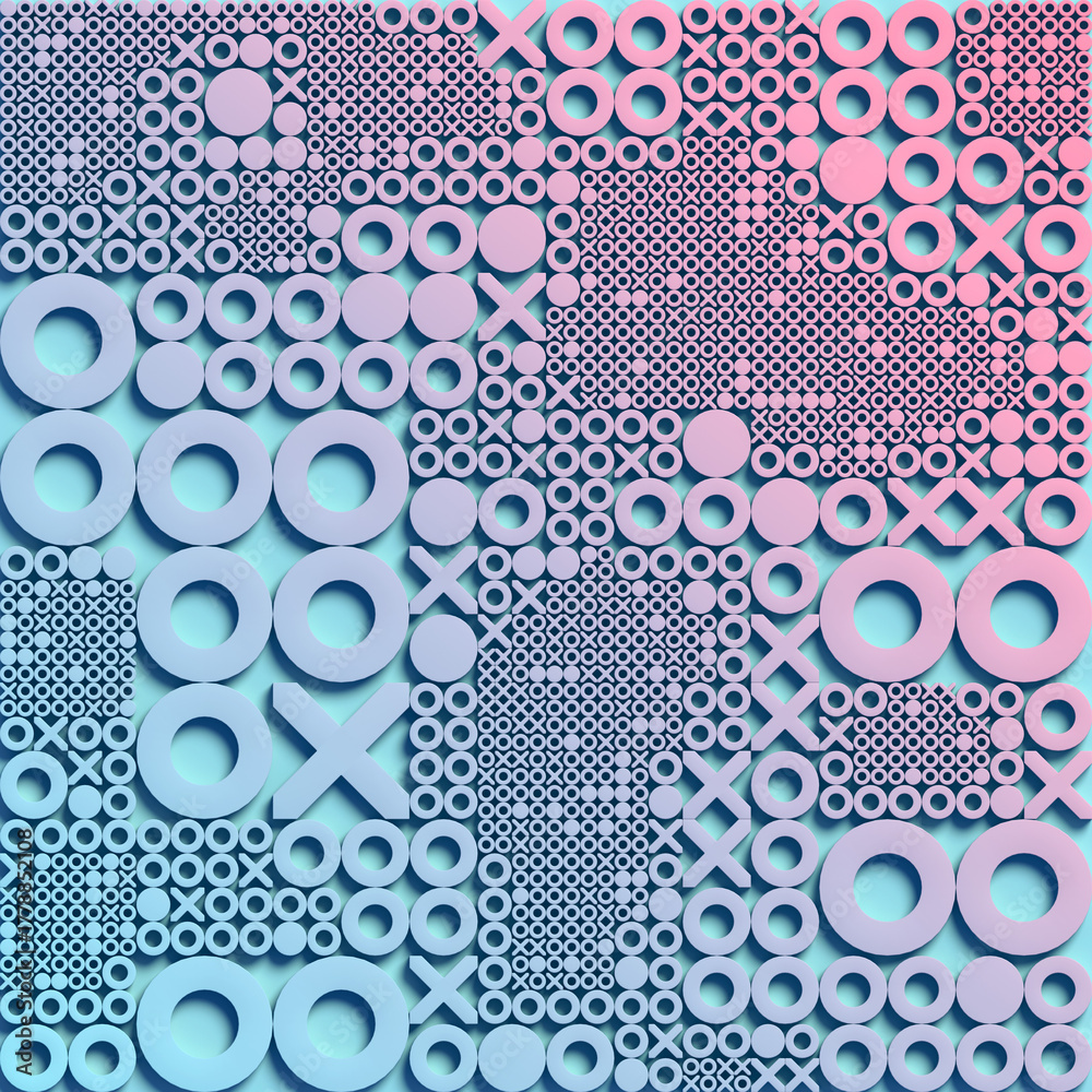 An abstract structure of multiple X's and O's arranged in a rhythmic pattern. 3d rendering #1778852108