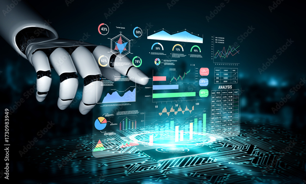 An advanced AI financial and business performance dashboard. A professional AI interface for deep analysis of company metrics. Motif #1730983949
