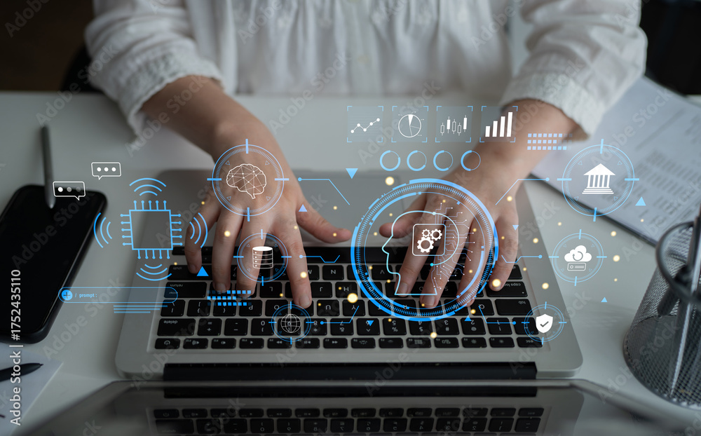 An advanced AI system for business and financial analysis. A futuristic interface for commanding an AI to process data from various domains. Motif #1752435110