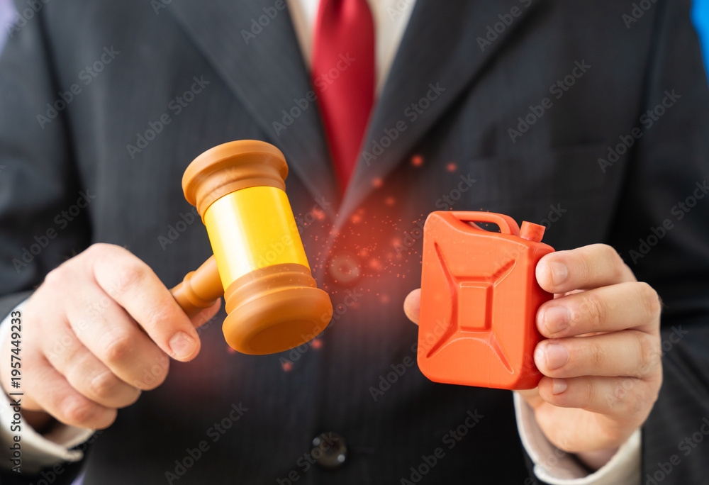 An official imposes restrictions on gasoline and diesel price increases. Fuel price increases, legislative changes. Excise taxes and fuel taxes. Government policy stabilizes markets #1957449233