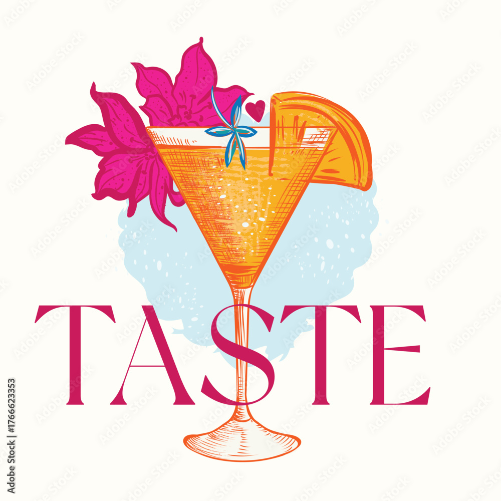 Apparel vector print with cocktail glass and flowers #1766623353