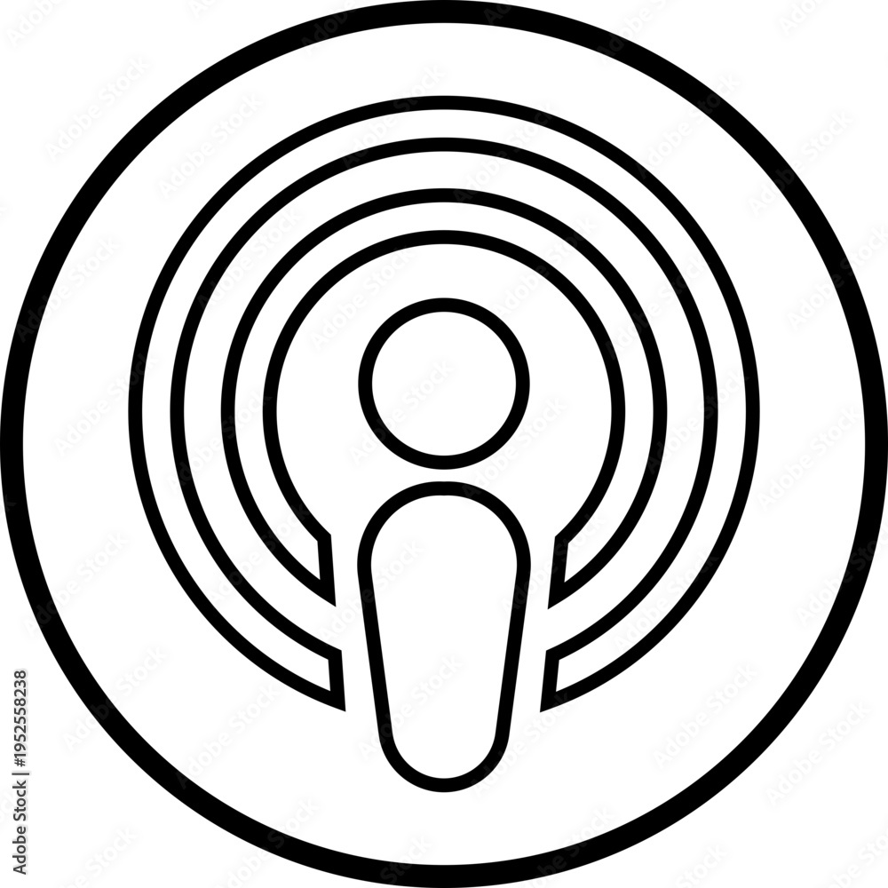 Apple podcast app icon in outline style. Logo options for audio streaming, mobile interface and media branding design. Digital social media vector illustration isolated on transparent background. #1952558238