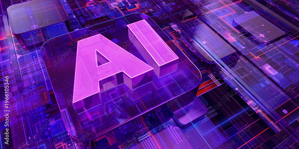 Artificial intelligence AI icon on a digital circuit board: neural network processing, machine learning algorithms, futuristic technology. Deep learning, predictive analytics, adaptive algorithms #1966105346