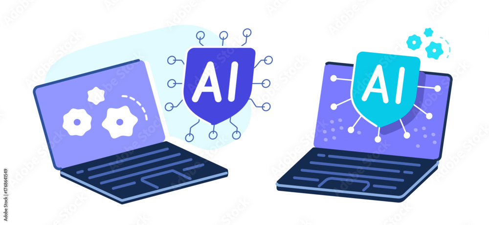 Artificial intelligence assistant on laptop screen. AI technology concept. CPU microchip vector illustration #1768641549