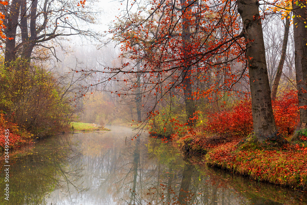 Autumn landscape - view of a autumn park and stream, in the Englischer Garten is a public park in Munich, Bavaria, Germany #1244950435