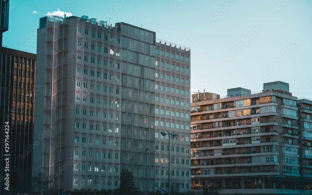 Autumn light reflected in the buildings at sunset. Madrid, Spain. #297164224