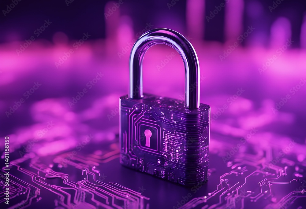 background security cyber concept neon created ai board purple padlock circuit software technology texture business datum illustration size science digital cyberspace wallpaper network physics modern #1401158150