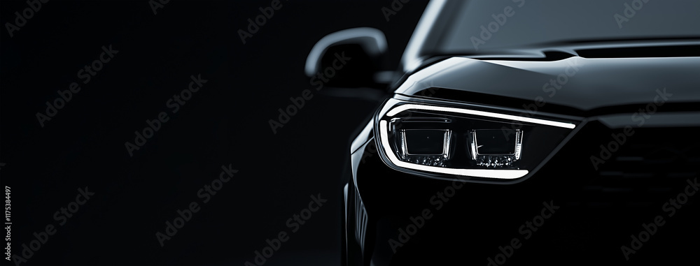 banner car headlight close up on black background #1175384497