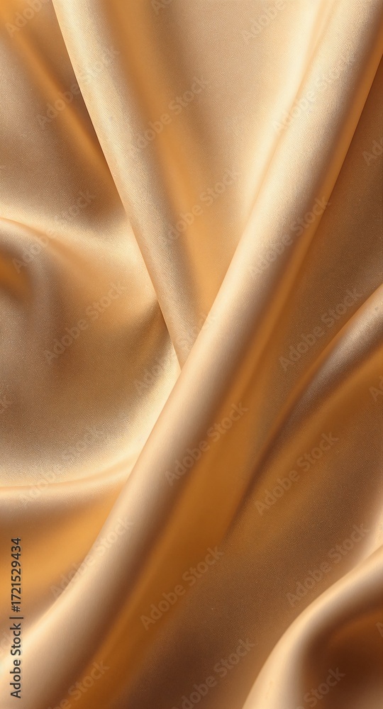 Beautiful background of a soft, flowing golden silk or satin fabric with elegant folds and waves. Soft light emphasizes the rich, shimmering texture. A symbol of luxury, elegance, and celebration #1721529434