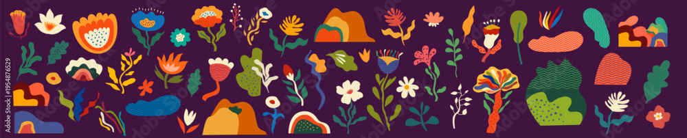 Beautiful flower collection with roses, leaves, floral bouquets, flower compositions. #1954876529