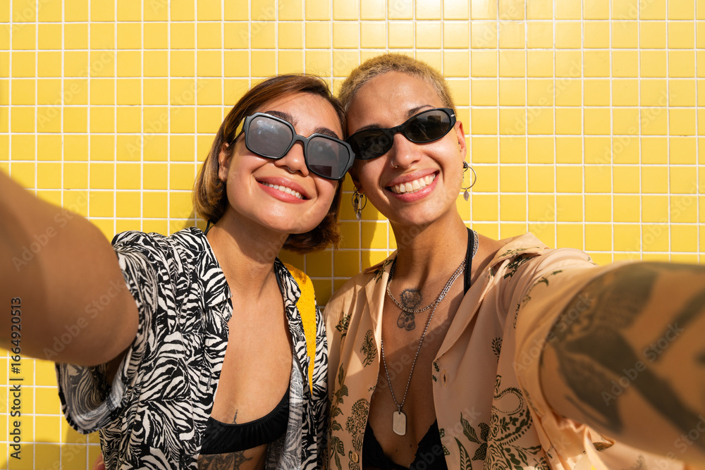 Beautiful lesbian couple of lovers dating outdoors #1664920513