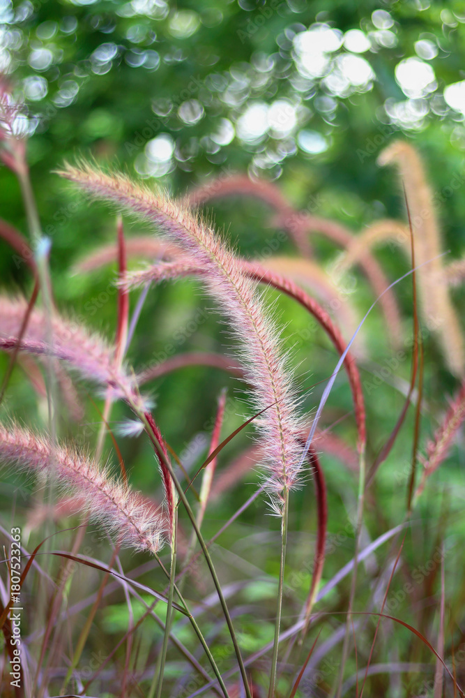 beautiful natural poaceae on green blur background. #1807523263