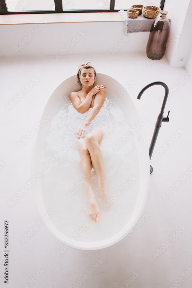 Beautiful woman relaxing in the bathtube. #332755977