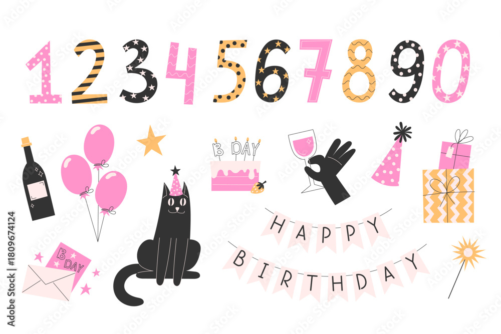 Big birthday elements set with numbers for cards, posters and festive party designs #1809674124