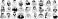 Big collection of various people's facial emotion expression, happy, sad, shocked, scared, angry, laughing, crying, etc. Outline, hand drawn sketch, black and white ink style. #567218161