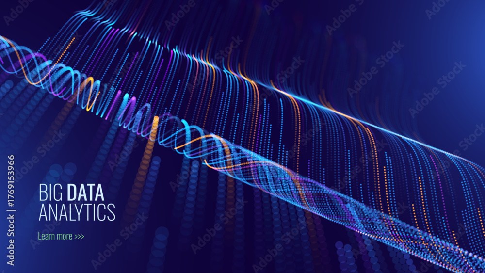 Big Data Flow Particles Dots. Digital Neural Network. Concept of AI Artificial Intelligence Technology Machine Deep Learning. Digital Communication. Scientific Research Presentation Vector. #1769153966