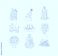 Birthday party elements with the inscription cake, hat, piñata, hot dog, balloon, pizza, dessert drawing with orange on beige background. #1754635962