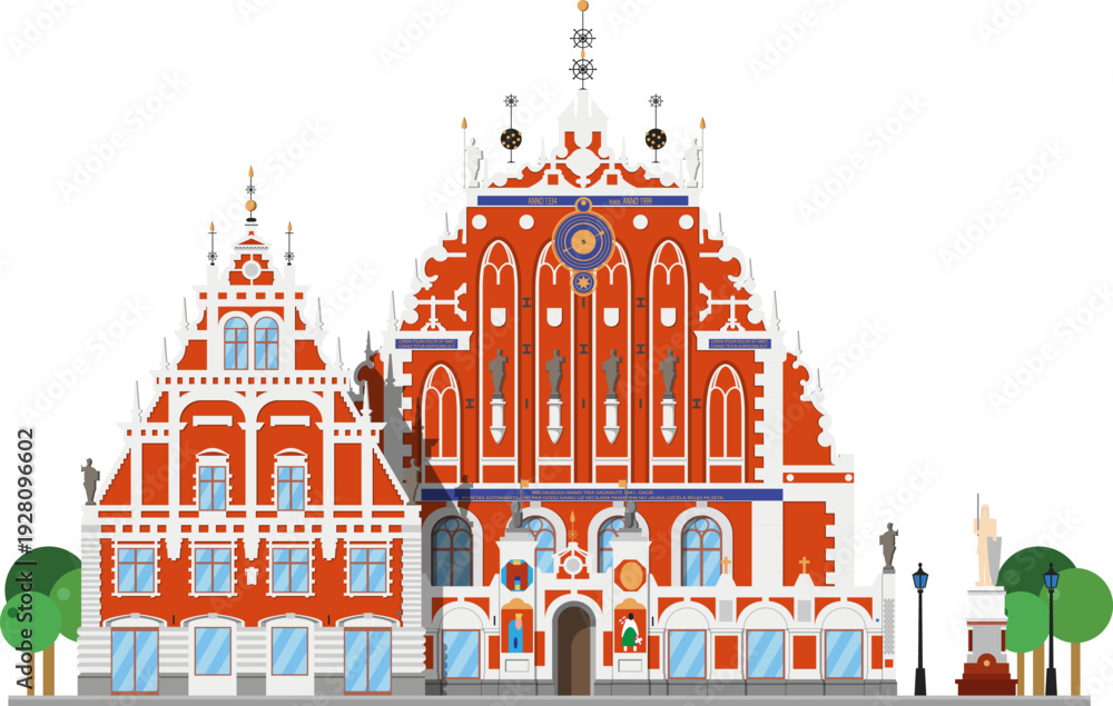 Blackheads House in Riga, Latvia, isolated on white background vector illustration. Monuments and landmarks Series #1928096602