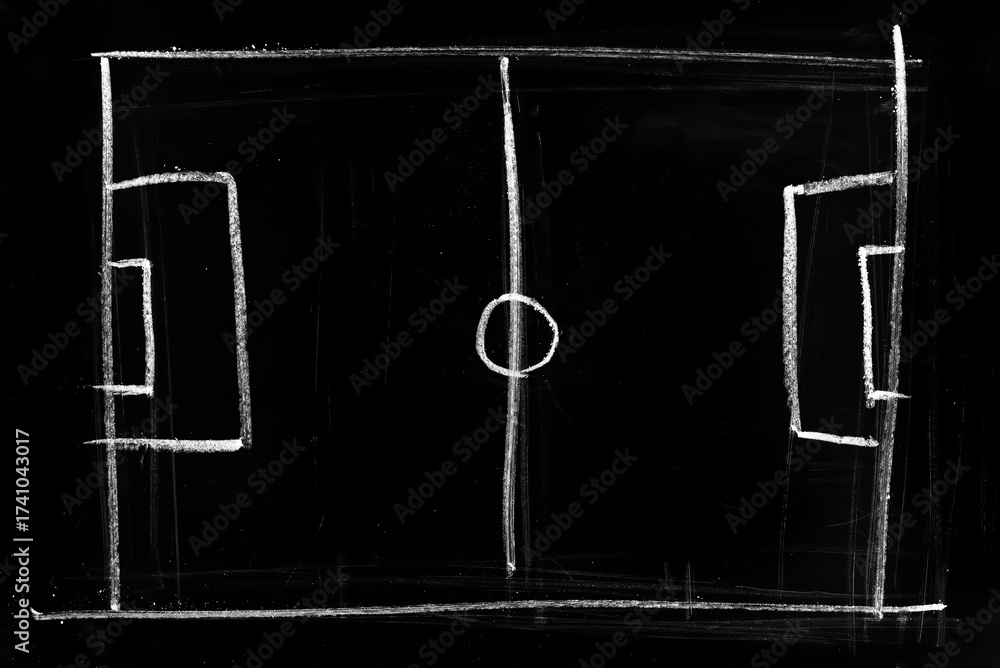 Blank football or soccer field, game strategy plan on blackboard, texture #1741043017