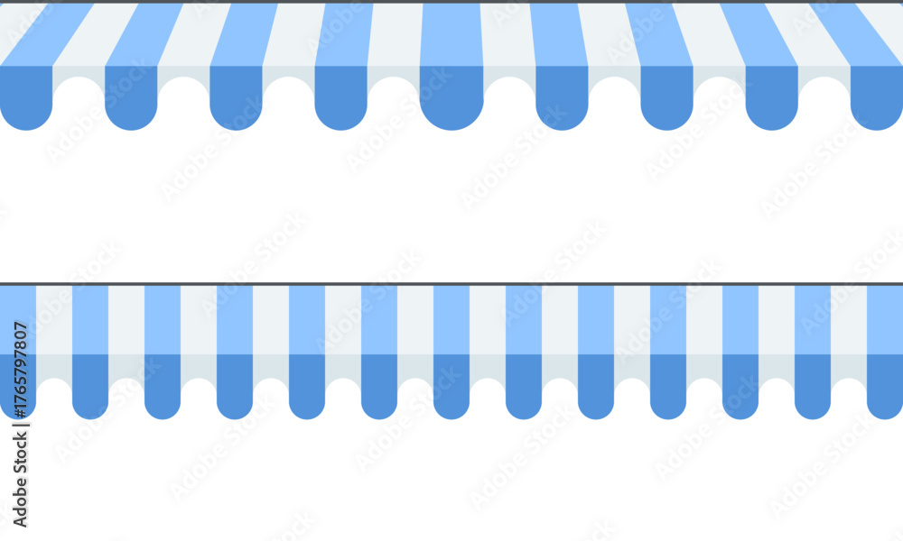 Blue and white awning striped canopy for decorating a banner isolated on a white background. Vector illustration flat design for poster. #1765797807