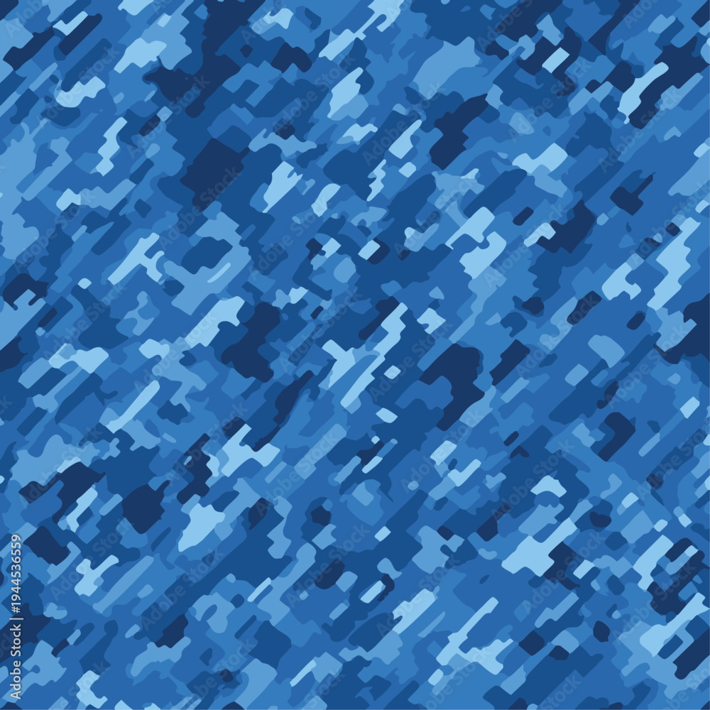 Blue Digital Camouflage Seamless Pattern. Abstract Modern Military Navy Camo Background. Tactical Marine Uniform Fabric Texture for Vector Print, Apparel Design, Web Wallpaper and Graphic Element. #1944536559