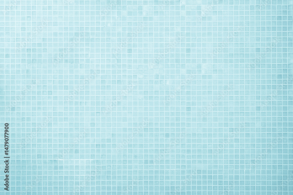 Blue light ceramic wall chequered and floor tiles mosaic background in bathroom, kitchen. Design pattern geometric with grid wallpaper texture decoration pool. Simple seamless abstract surface clean. #1479077900