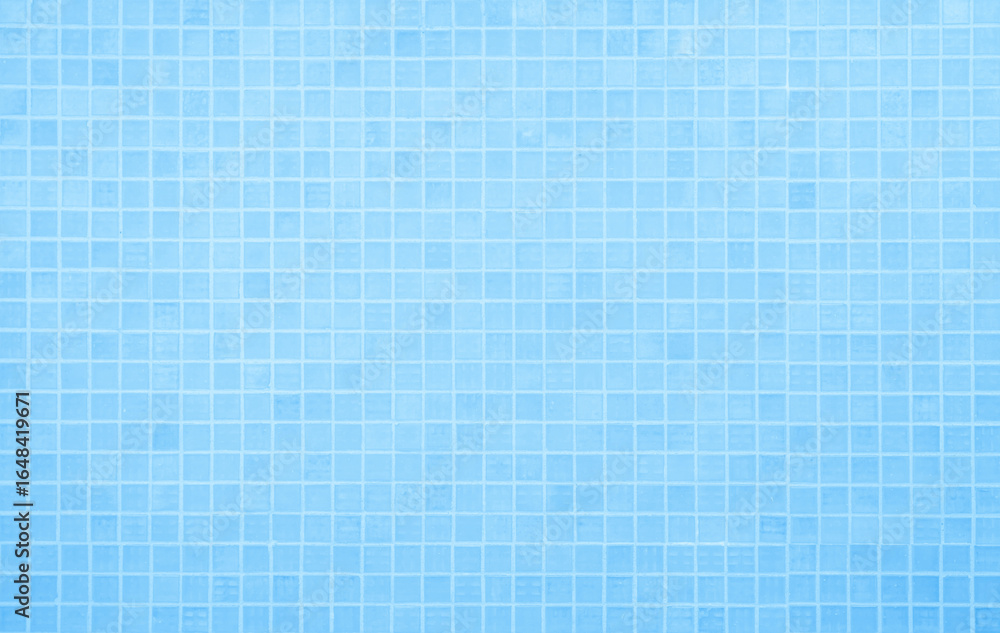 Blue light ceramic wall chequered and floor tiles mosaic background in bathroom, kitchen. Design pattern geometric with grid wallpaper texture decoration pool. Simple seamless abstract surface clean. #1648419671