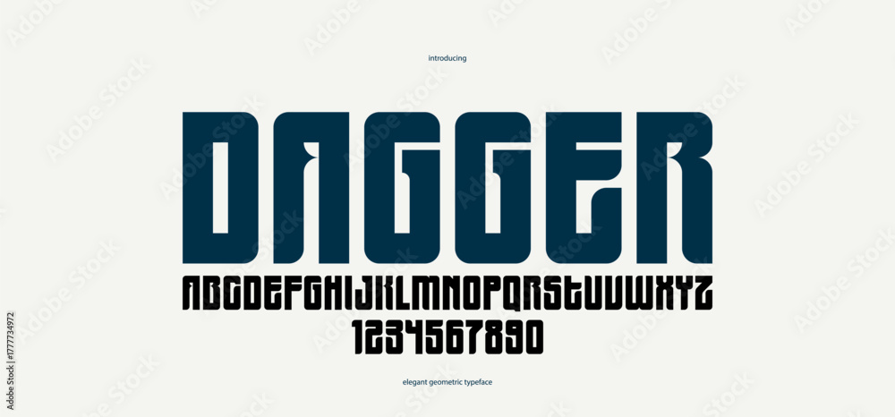 Bold simple sans serif display font for logos headers or slogans, vector thick and heavy geometric typeface, uppercase letters alphabet with numbers, poster and advertising. #1777734972