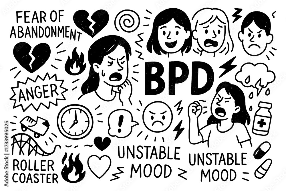 bpd concept with emotions, relationships and mental health doodle icons, Transparent Background #1733995025