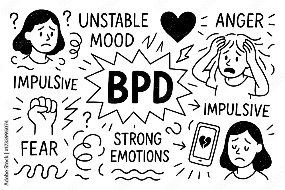 bpd concept with emotions, relationships and mental health doodle icons, Transparent Background #1733995074
