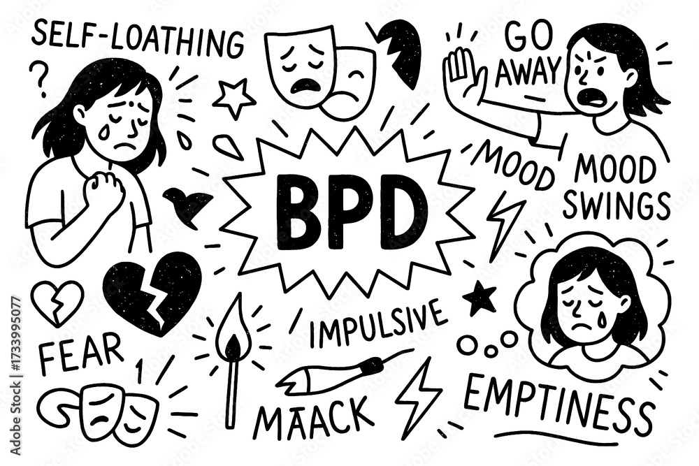bpd concept with emotions, relationships and mental health doodle icons, Transparent Background #1733995077