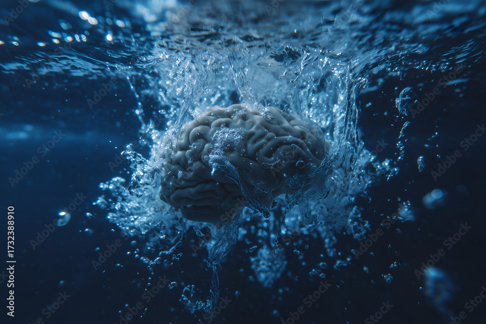 Brain Submerged in Dark Water, Ideas, Stress, and Mental Health #1732388910