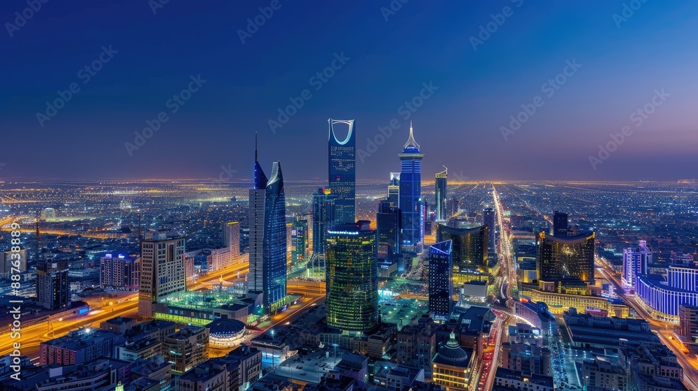 Breathtaking cityscape of Riyadh Saudi Arabia showcasing modern skyscrapers and urban development #887638889